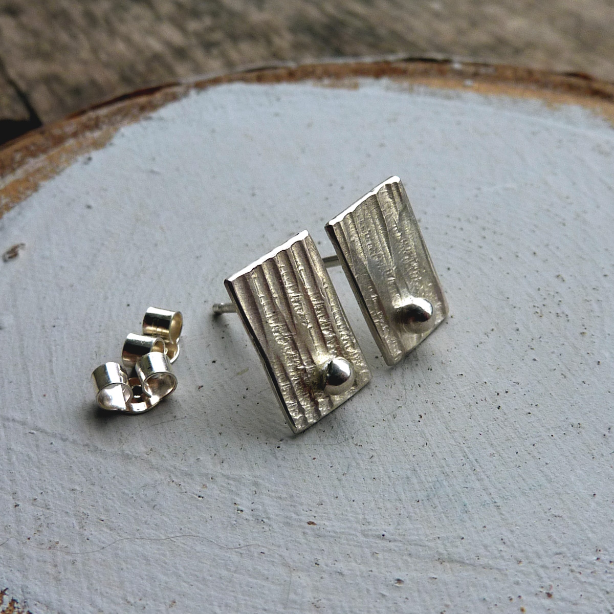 Influenced by my love of natural textures, woodland walks each pair of earrings are hand textured so totally unique. These small delicate earrings are solid silver with silver posts and scrolls. Perfect for every day and different from any other pair.
